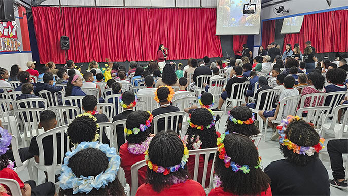 A programação contou com dois espetáculos emocionantes: “O canto da sereia: mistérios do fundo do mar”, com a turma do Pré I A, e “Florecer”, apresentado pelos alunos do 5º ano Integral. As apresentações trouxeram ao palco temas de encantamento, transformação e renovação — alinhados à proposta da estação — e foram recebidas com entusiasmo pelo público presente.