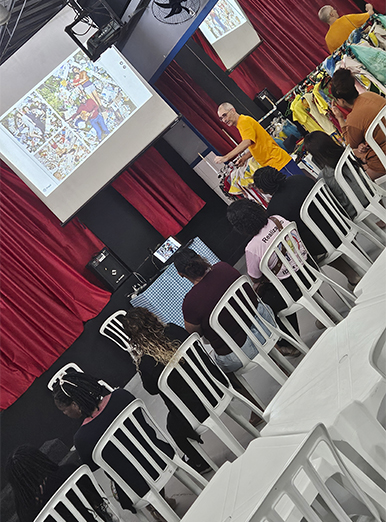 O bate-papo foi conduzido pelo biólogo e educador ambiental Eduardo Bernhardt, que trouxe dicas práticas e orientações sobre como podemos cuidar melhor do planeta com pequenas atitudes no dia a dia. Falamos sobre a importância de reduzir o consumo, separar o lixo corretamente e pensar antes de comprar algo, para evitar desperdícios.